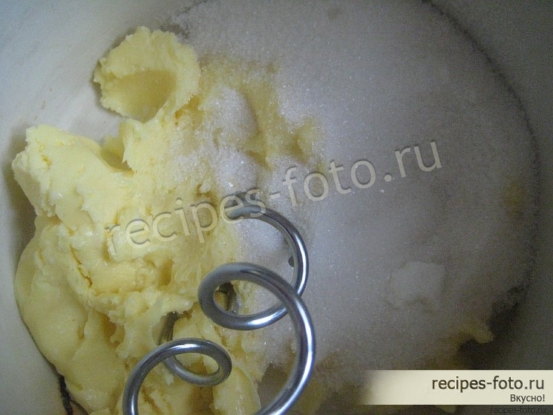 В отдельной емкости взобьем миксером размягченное масло с сахаром.