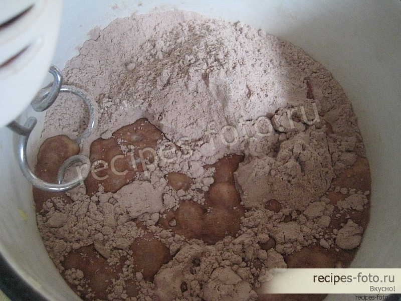 Хорошо перемешаем все или взобьем миксером. Получится жидкое шоколадное тесто.