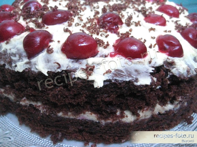 Шоколадный торт с вишней и взбитыми сливками проще простого